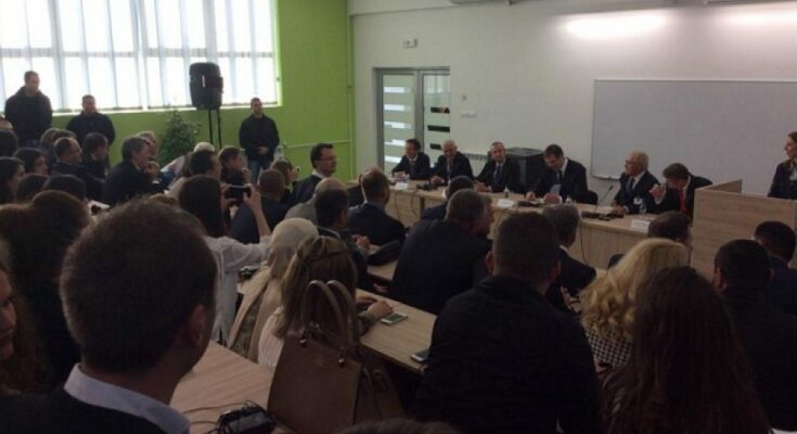 BUJANOVAC, 17. novembar 2015. (Bujanovačke; foto -twitter-serbianpm) – Uoči početka svečanosti dodele diploma na Odeljenju subotičkog Ekonomskog fakulteta, Jonuz Musliju, predsednik Nacionalnog saveta Albanaca (NSA) ustao je iz publike i glasno negodovao zbog činjenice da su od septembra na carinskom terminalu u Preševu blokirani udženici na albanskom, donacija kosovske vlade.