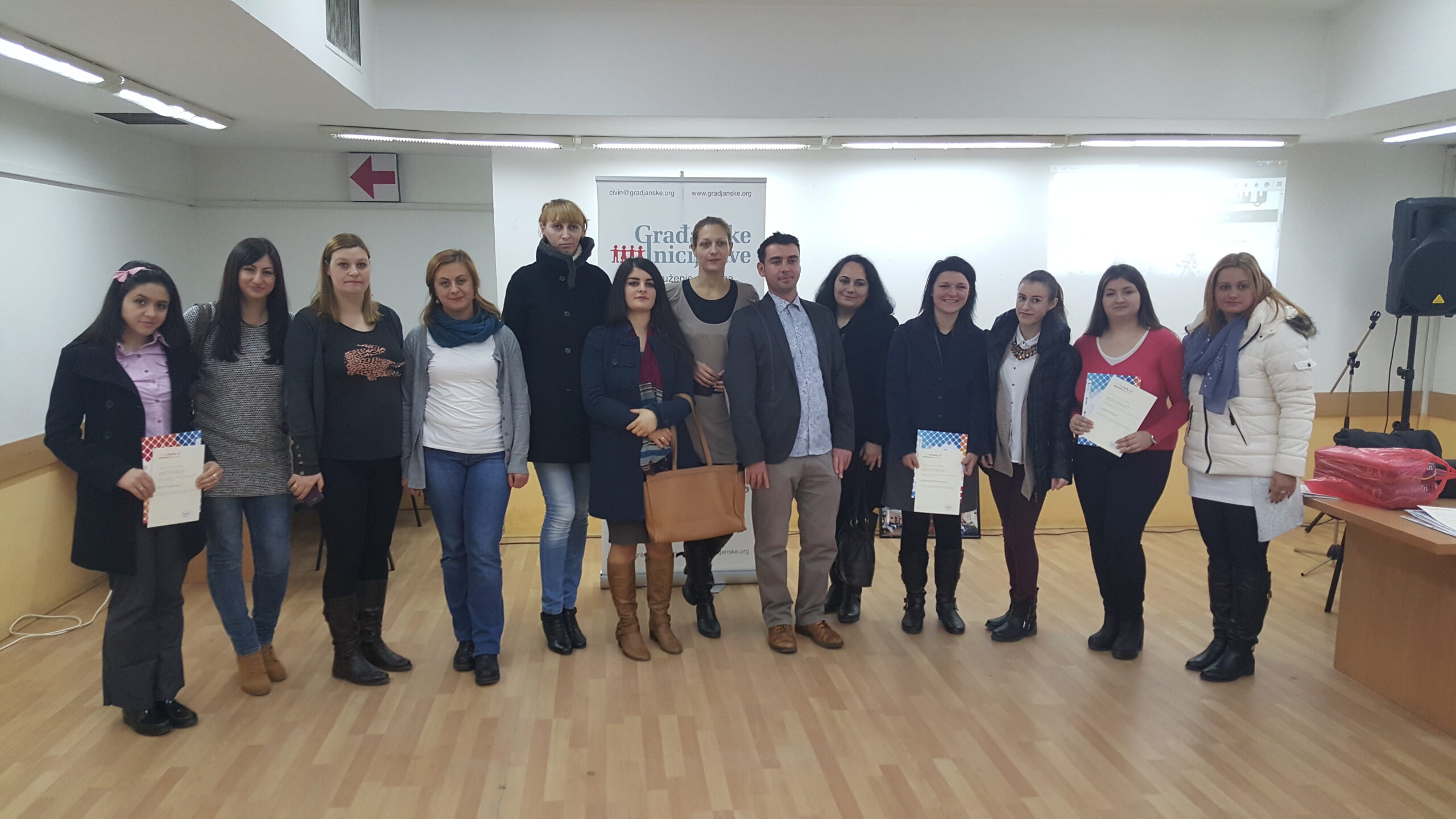 BUJANOVAC, 25. decembar 2015 – Učesnicama programa YouthBuild “Zapošljavanje mladih žena u IT sektoru”, koji sprovode Gradjanske inicijative, u Bujanovcu su dodeljeni sertifikati o završenoj školi za izrdau web sajtova, kao i setrifikati o učešću u projektu.