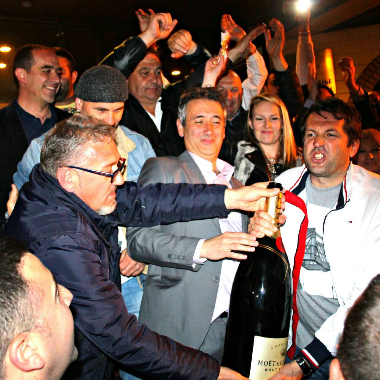 U toku večeri, pristalice SNS su, uz trubače, slavile pobedu na gradskim ulicama i ispred zgrade lokalne samouprave.