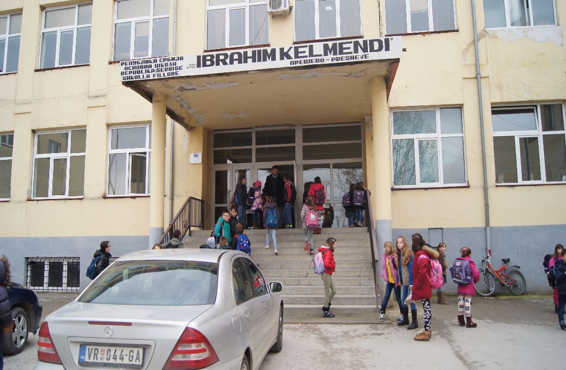 BUJANOVAC, PREŠEVO, BEOGRAD, 1. jun 2016. – Osnovna škola “Ibrahim Keljmendi” u Preševu najveća je škola Pčinjskog okruga i jedna od najvećih u Srbiji. Škola ima oko 1600 učenika i na prvi pogled ne razlikuje se mnogo od ostalih. Velika zgrada, malo oronula, ali očigledno nedavno renovirana, izdvaja se u nizu sličnih duž glavne ulice u Preševu. Učionice izgledaju uobičajeno, tabla, klupe, ormarići. Jedino nastava deluje malo drugačije, jer se sve svodi na to da profesor diktira, a deca beleže.