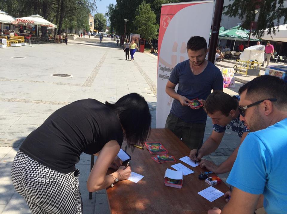 BUJANOVAC, 14. jul 2016. – Odbor za ljudska prava je u sredu u Bujanovcu, u okviru projekta „Jačanje stabilnosti na jugu Srbije kroz integraciju albanske nacionalne manjine“, odrzao uličnu akciju na temu “Obrazovanje na jezicima manjina”.