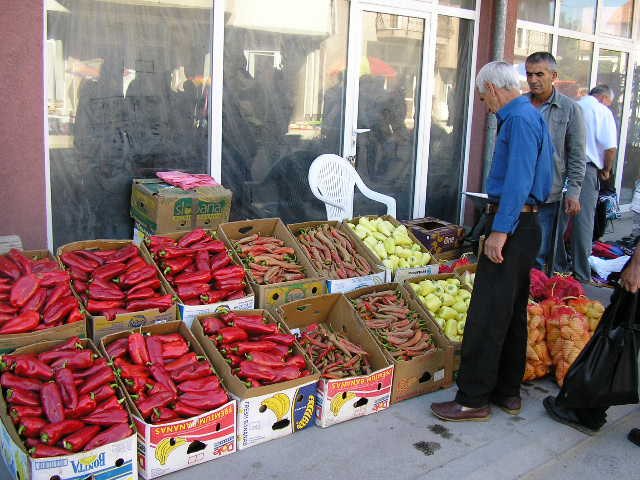BUJANOVAC, 29.avgust 2016.-Već drugi ponedeljak zaredom, od kada se prvi put pojavila ove sezone, paprika “ajvarka” mami pažnju kupaca na Zelenoj pijaci u Bujanovcu.