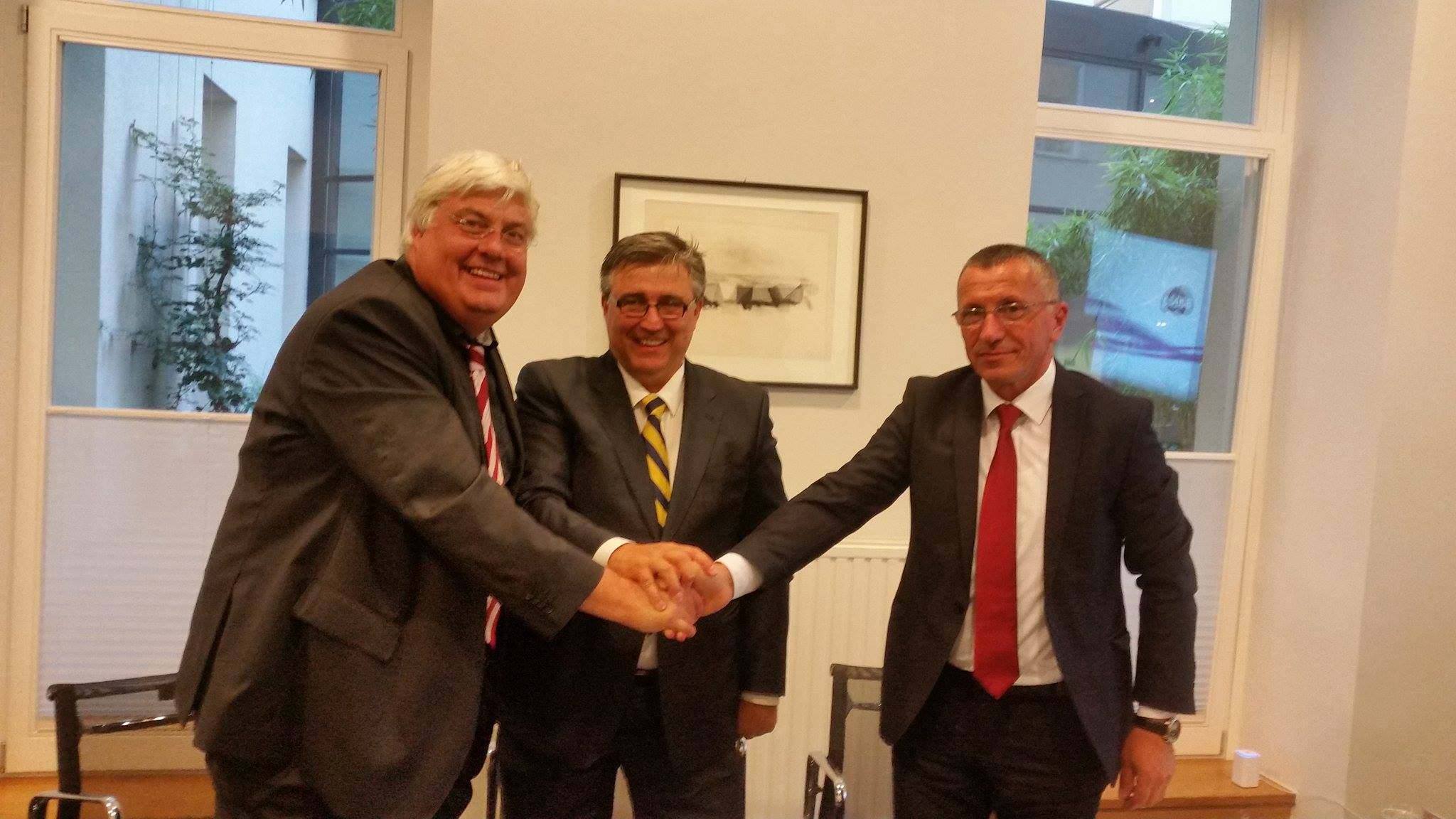 BUJANOVAC, BEČ, 28. septembar 2016. – Šaip Kamberi je u Beču, gde boravi sa svojim saradnicima, u ime opštine Bujanovac čiji je predsednik potpisao Memorandum o saradnji sa predstavnicima Univerziteta “Martin Stieger” iz Velsa, kojim se otvara mogućnost da naš grad postane regionalni obrazovni centar – objavio je Kamberi na svom Fejsbuk profilu a prenose mediji na albanskom.