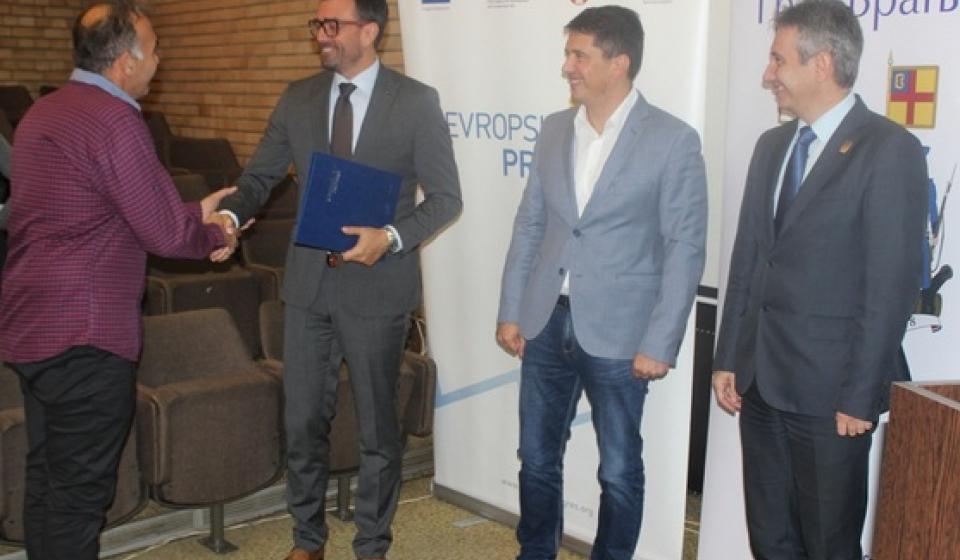 VRANJE, BUJANOVAC, 30. septembar 2016. (Izvor Vranjske) – U velikoj sali Skupštine grada Vranja u petak je sedamnaest preduzetnika iz jugoistočne i jugozapadne Srbije dobilo grantove u okviru inicijative ,,Opremi, zaposli, pokreni“ Evropskog PROGRES-a.