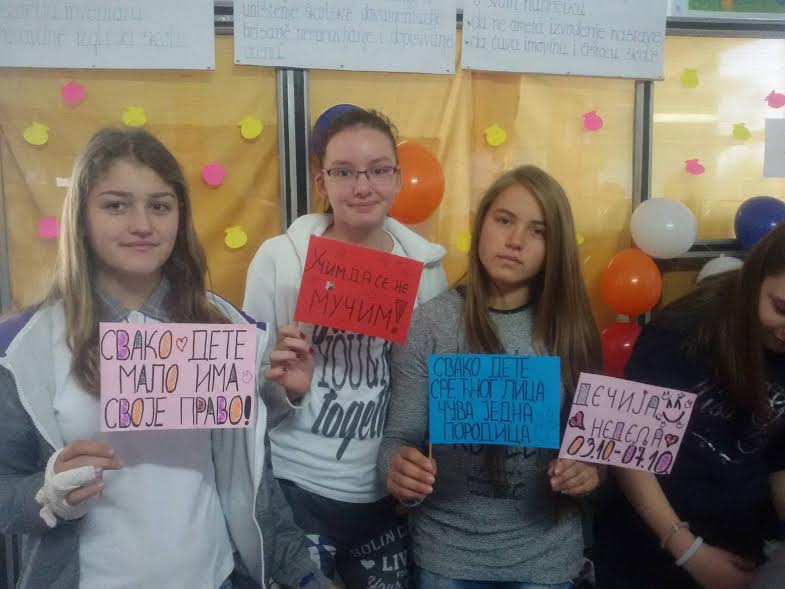 BUJANOVAC, 7. oktobar 2016. – Članovi Učeničkog parlamenta OŠ „Branko Radičević“ u Bujanovcu juče su, u školskom holu, u okviru obeležavanja ovogodišnje Dečje nedelje, uz pomoć pkolskog psihologa, organizovali promociju prava deteta.