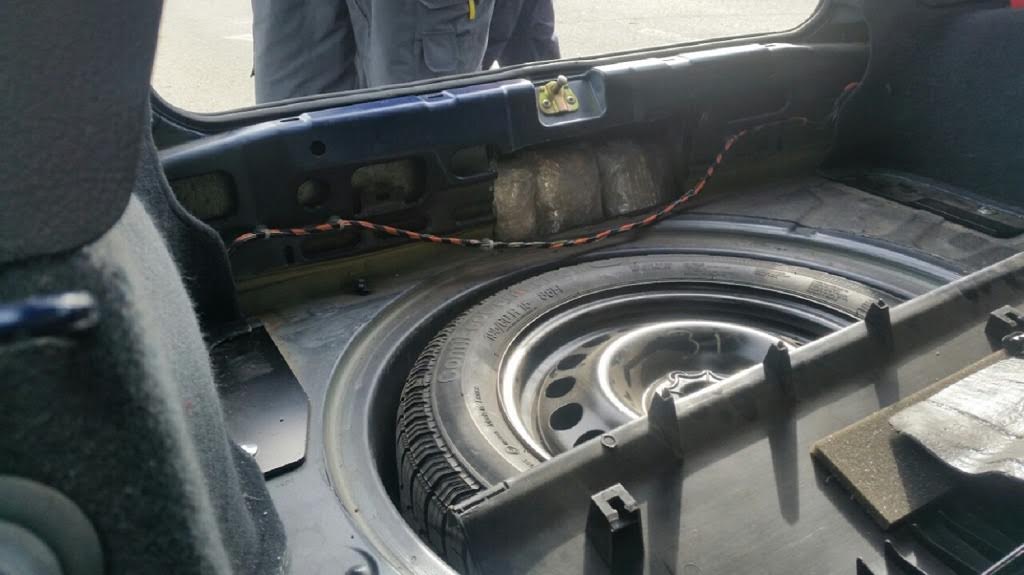 Zbog pretpostavke da je u automobilu nešto skriveno, mada su supružnici to negirali, skenerom je utvrđeno da se u prostoru zadnjeg branika nalazi marihuana.