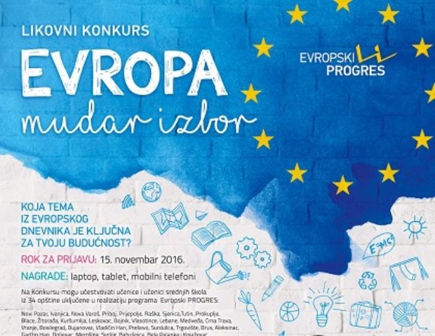 BUJANOVAC, 18. oktobar 2016. – Razvojni program Evropski PROGRES raspisao je u ponedeljak nagradni likovni konkurs za učenike i učenice srednjih škola i gimnazija iz 34 opštine jugoistočne i jugozapadne Srbije na temu „Evropa: Mudar izbor“.