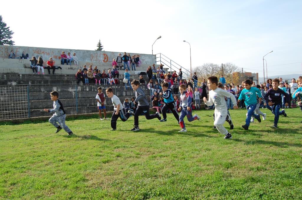BUJANOVAC, 27. oktobar 2016. (Foto: C.krst Bujanovac) – U organizaciji Crvenog krsta i Osnovne škole „Branko Radičević“ u Bujanovcu, uz saradnju sa Crvenim krstom Srbije, istrčana je, zbog kiše ranije odložena, tradicionalna „Trka za srećnije detinjstvo“. Na stadionu bujanovačkog FK BSK trčalo je 197 učenika ove škole.