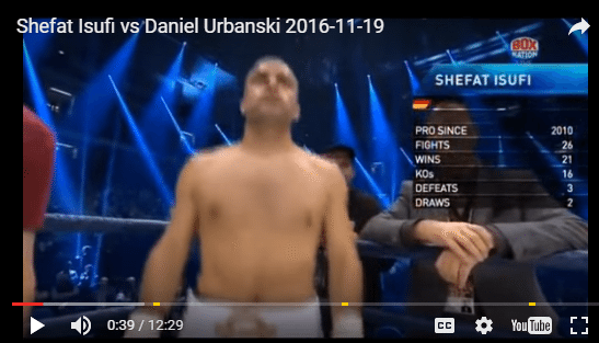 BUJANOVAC, HANOVER, 21.novembar 2016. (foto: boxrec, youtube) – Šefat Isufi, bokser iz Velikog Trnovca koji boksuje u Nemačkoj i nastupa za Bajern iz Minhena, preksinoć je u Hanoveru, u trećoj rundi savladao Poljaka Daniela Urbanskog.