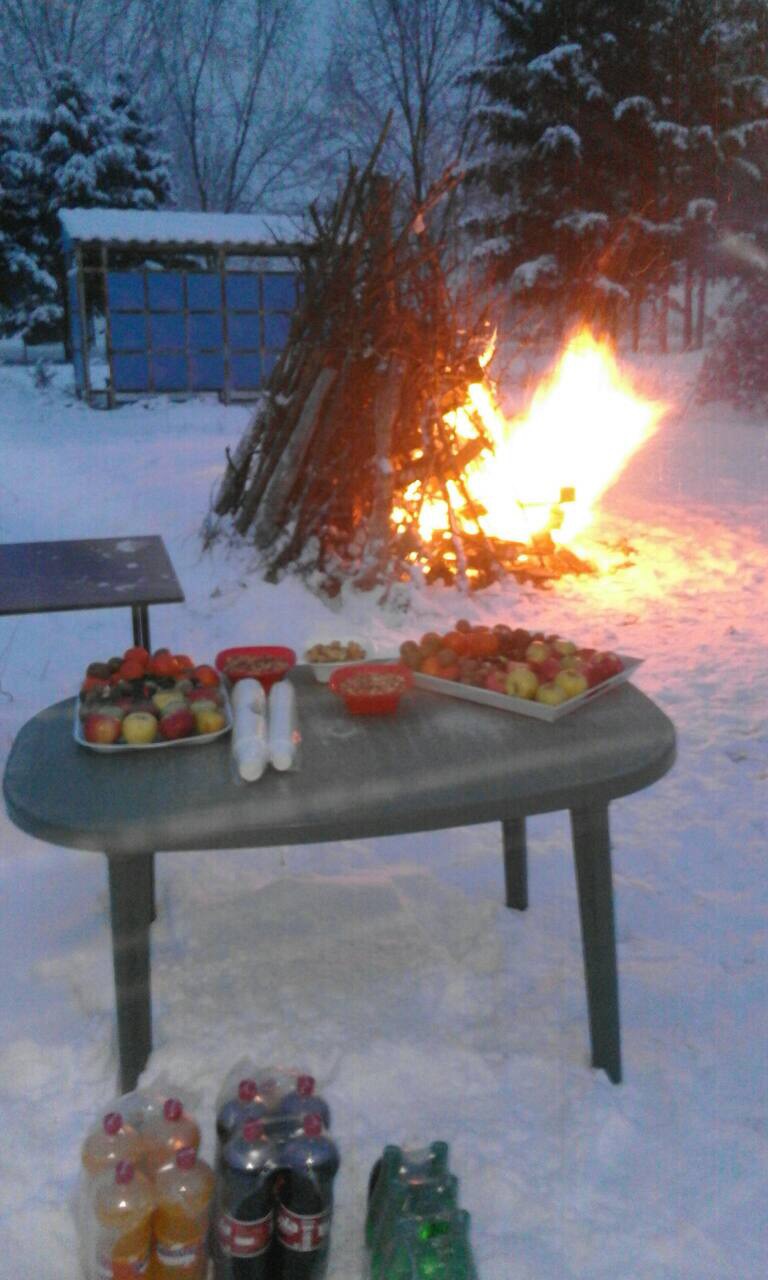 Bujanovačka Banja, 6. januar 2017.- Po prvi put i meštani Bujanovačke Banje organizovano su večeras obeležili Badnje veče, uz vatru badnjaka, rakiju, muziku i trpezu na otvorenom.