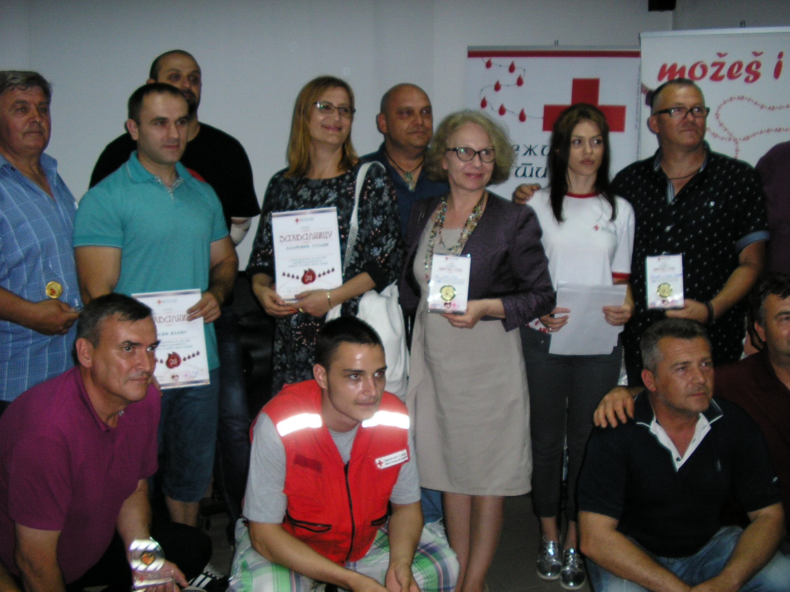 BUJANOVAC, 14.jun 2017. – Na svečanosti u prostorijama Crvenog krsta Bujanovac, priređenoj povodom obeležavanja Svetskog dana davalaca krvi, dodeljeno je 40 priznanja višestrukim davaocima, organizacijama i institucijama koje su svojim radom pomogle u promociji, omasovljenu dobrovoljnog davalaštva.