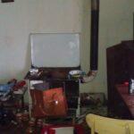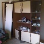 Unutra televizor, krevet, regal i nešto garderobe koju je dobio.