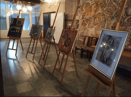 BUJANOVAC, 13. juli 2017. (foto Titulli.com)- Gëzim Shabani, umetnik iz Bujanovca, u holu Domu kulture ima samostalnu izložbu slika.