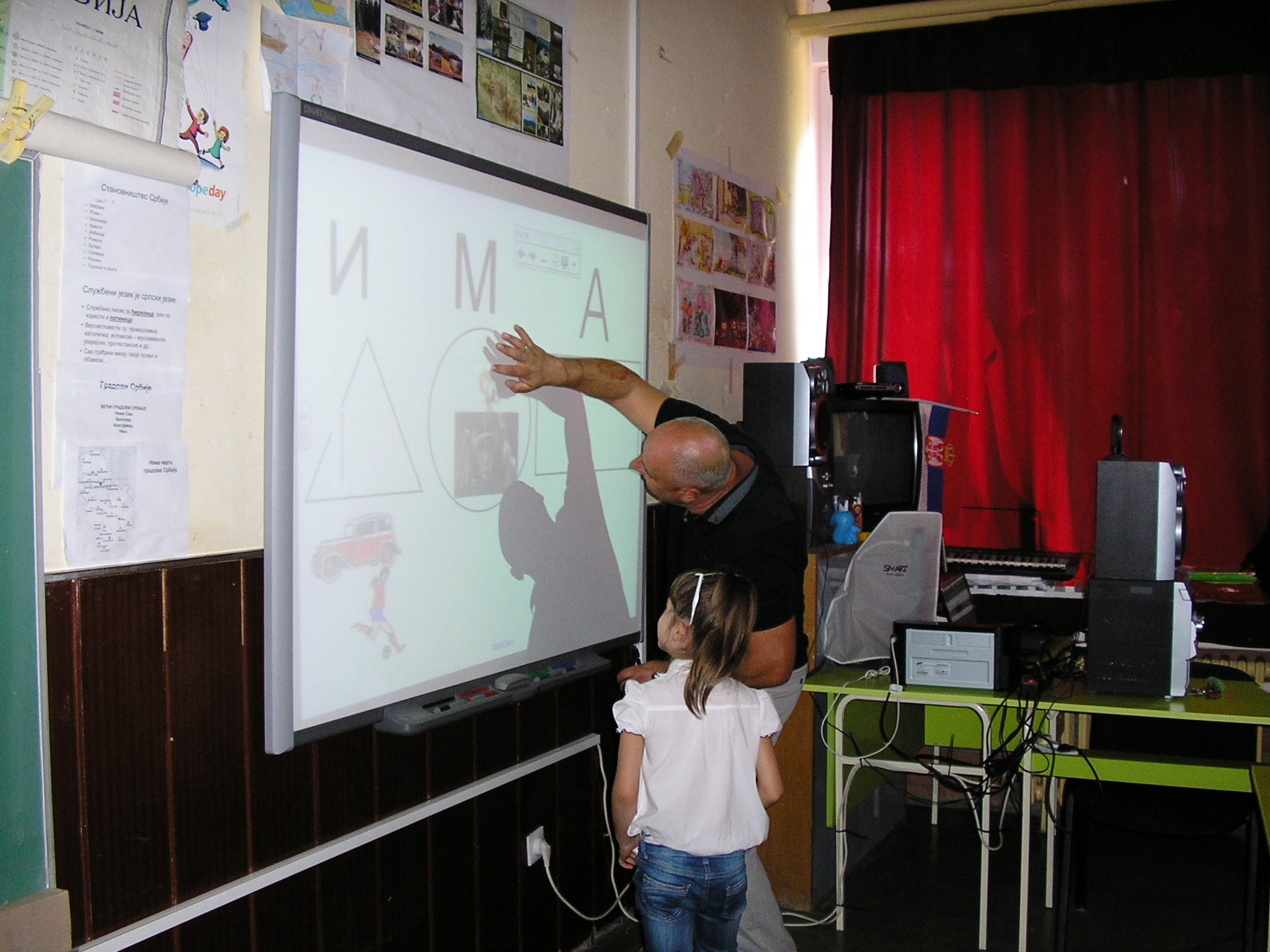 Učitelj već počeo sa propitivanjem. Prvaci, puni znanja, javljaju se da pokažu na „pametnoj tabli“.