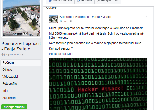 BUJANOVAC, 14. septembar 2017. – Već nekoliko dana traju hakerski napadi na sajt opštine, piše na zvaničnoj fejsbuk stranici opštine Bujanovac.