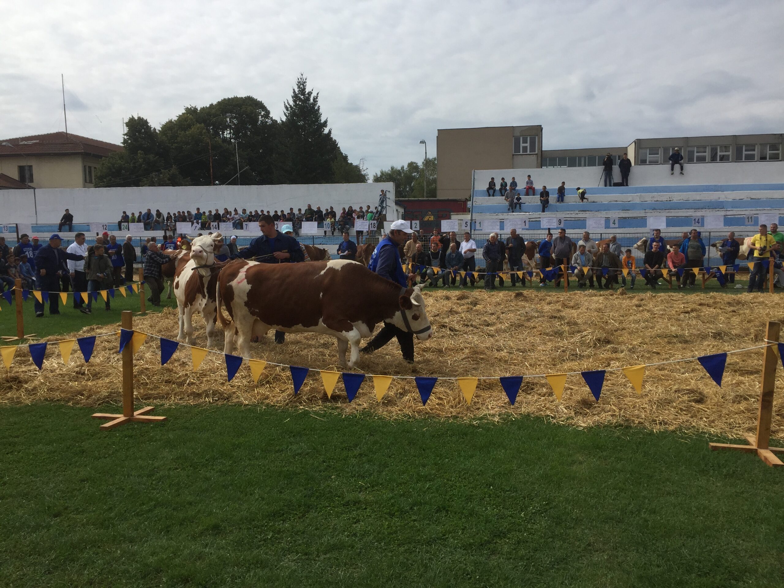 Bujanovac, 30. septembar 2017.- Treća izložba goveda simentalske rase otvorena je u subotu na gradskom stadionu u Bujanovcu.