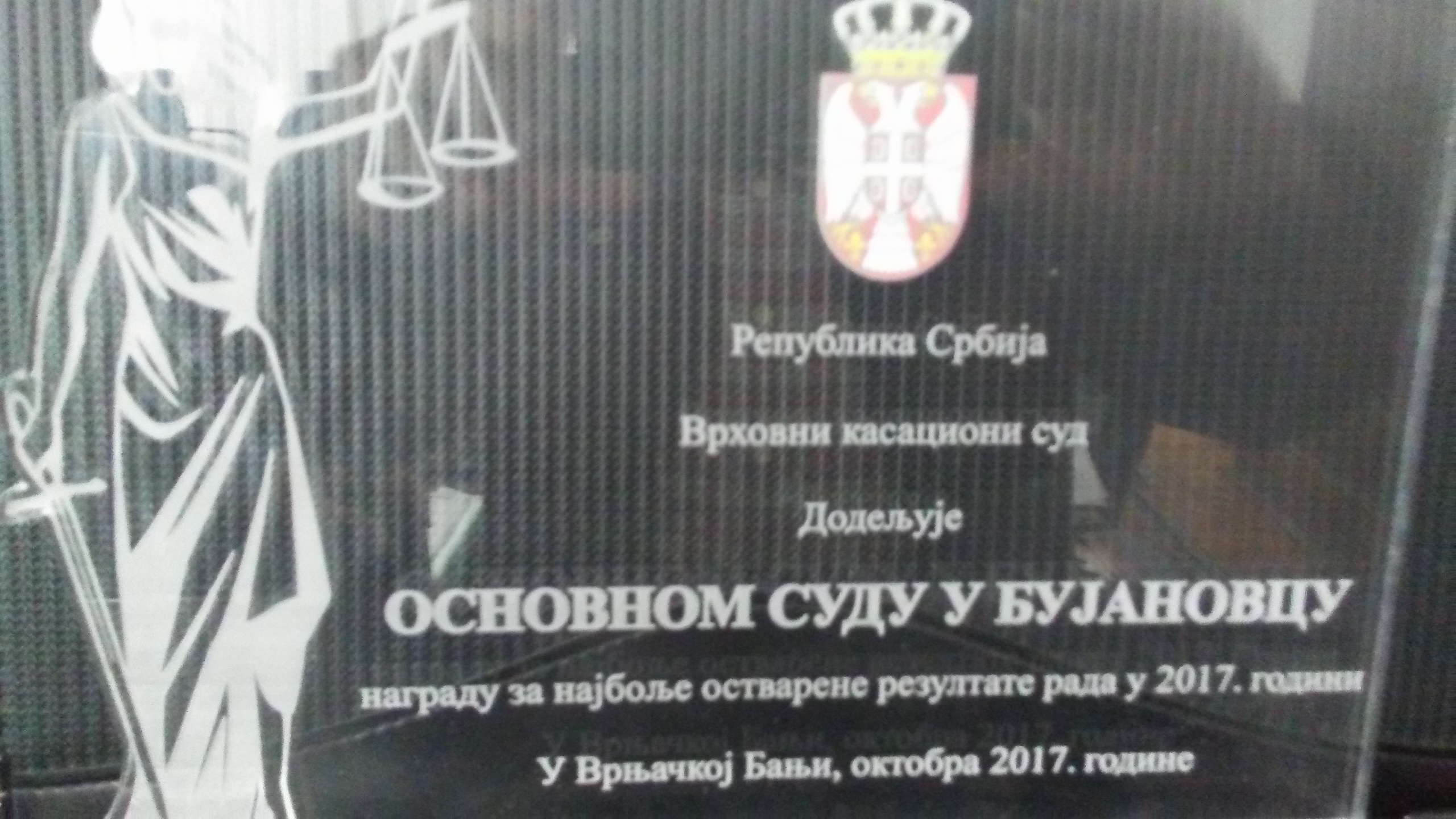 BUJANOVAC, 30. oktobar 2017. – Osnovni sud u Bujanovcu dobitnik je nagrade za najbolje ostvarene rezultate rada u 2017. godini, o čemu su pisale Bujanovačke.