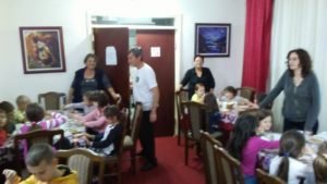 Zatekli smo ih na ručku u kome su uživali posle povratka iz obližnjeg manastira Sv.Dimitrije.