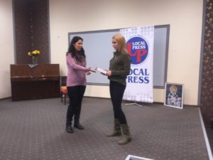 Njima je nagrade, u vranjskoj Gimnaziji čiji su učenici trećeg razreda, uručila Marija Obrenović iz Lokal presa, poslovnog udruženja koje okuplja lokalne medije.