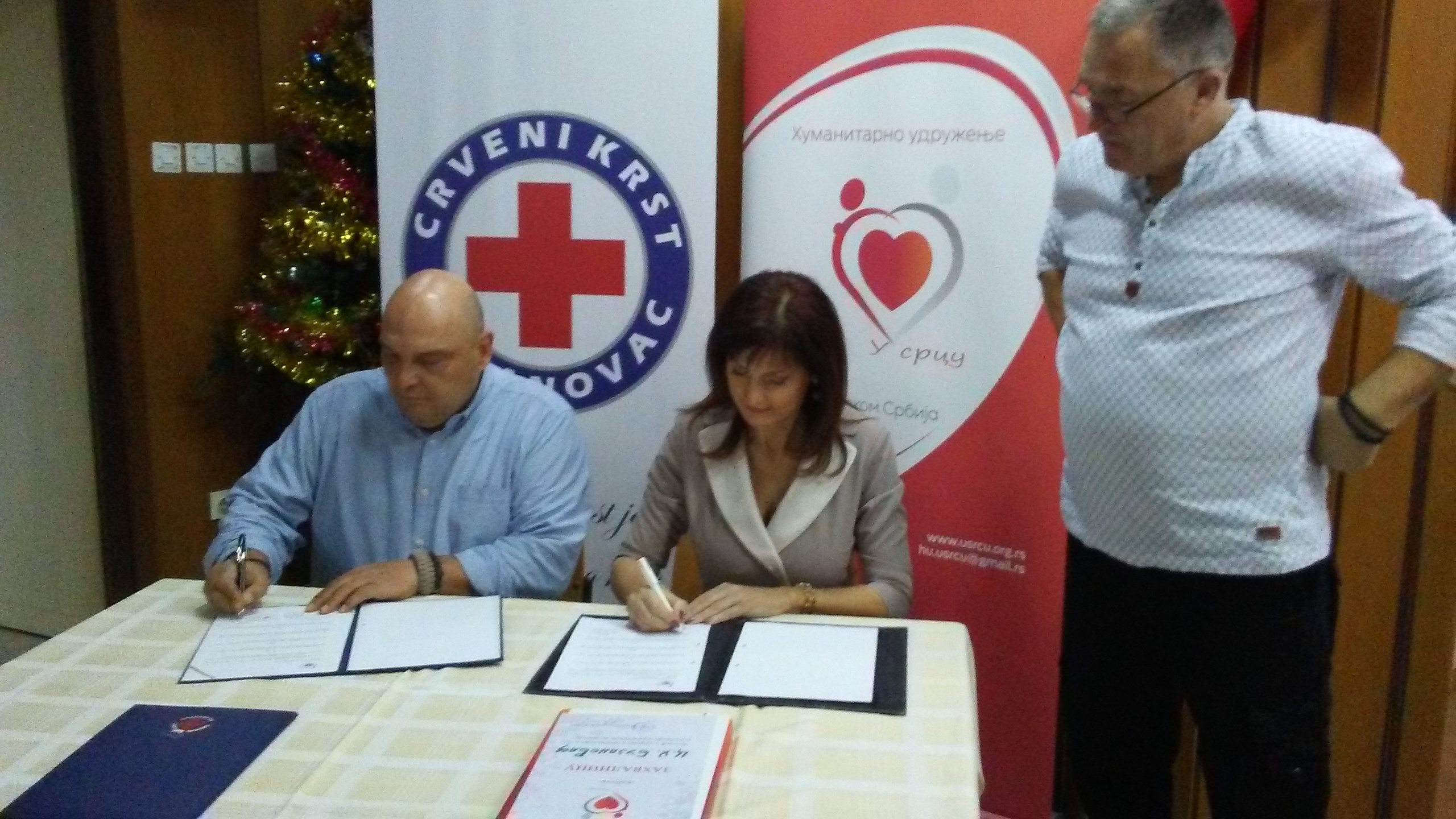 BUJANOVAC, 28. decembar 2017. – Predsednica Humanitarnog udruženja “U srcu” Telekoma Srbije Suzana Nujić i sekretar Crvenog krsta Bujanovac Bratislav Lazarević u četvrtak su potpisali sporazum o međusobnoj saradnji i zajedničkom učešću u humanitarnim aktivnostima.