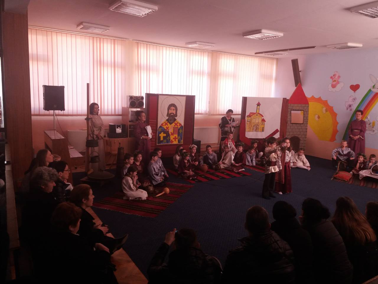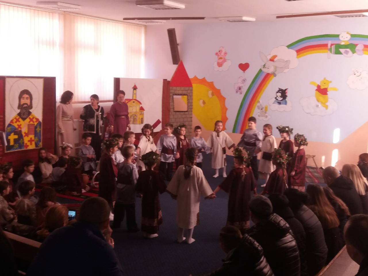 Bujanovac, 26. januar 2018.- Deca starijih grupa Predškolske ustanove Naša radost u Bujanovcu održali su za svoje vaspitače i roditelje predstavu povodom Dana Svetog Save.
