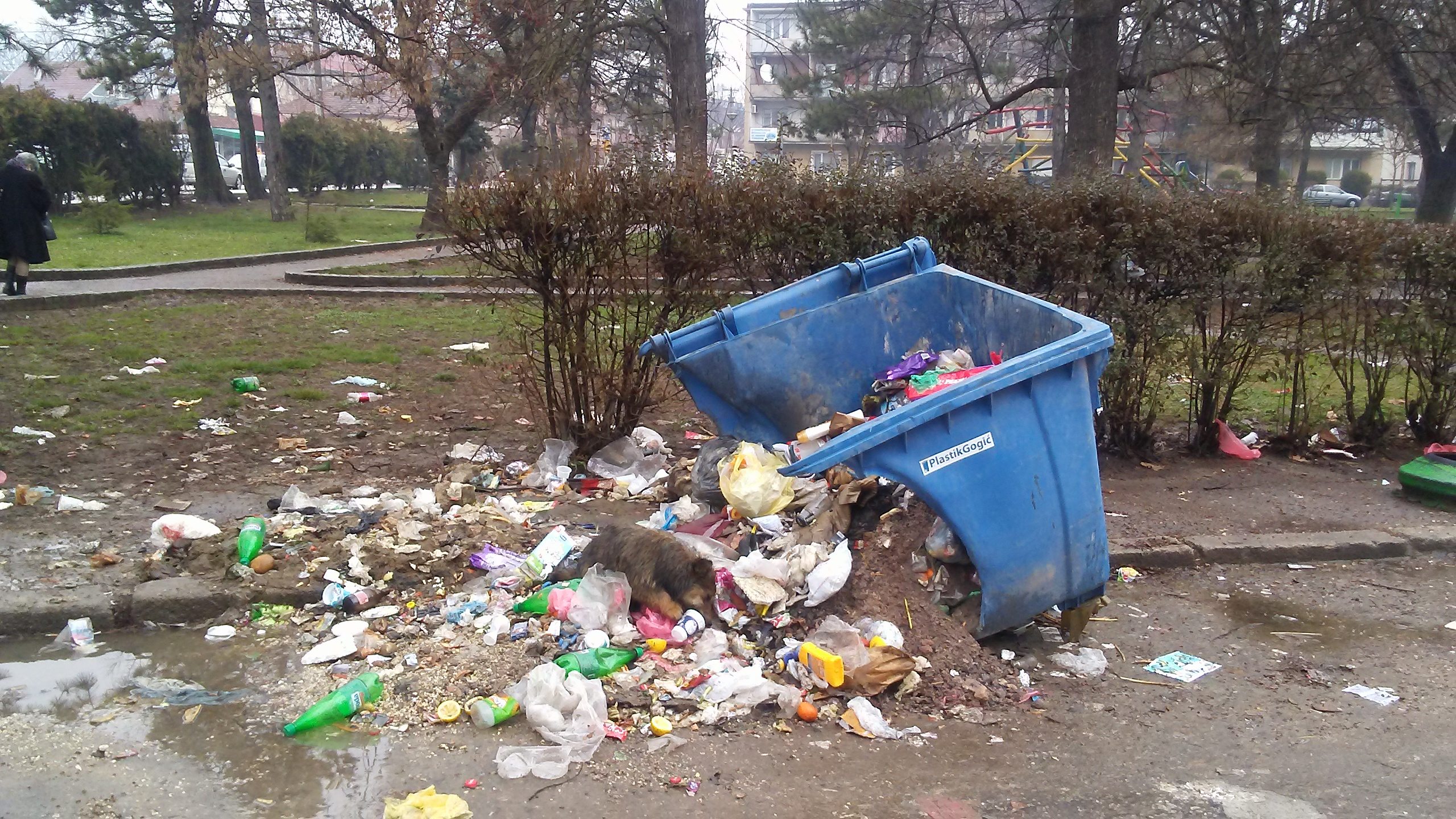 Sada je kontejner na ulazu u park neupotrebljiv, a đubre se baca oko njega.
