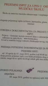 BUJANOVAC,7. april 2018 – U Školi za osnovno muzičko obrazovanje u Bujanovcu u utorak (10.april) će početi prijem dokumentacije za polaganje prijemnog ispita za klavir, harmoniku, gitaru i klarinet.