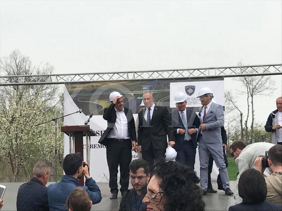 Bujanovac, Priština, 17. april 2018.(foto Luginalajm, Koha.net)- Kosovski premijer Ramuš Haradinaj otvorio je radove na izgradnji autoputa Priština -Bela zemlja na administrativnoj liniji kod Bujanovca.