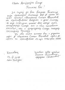 Povod za pisanje je, kaže se u pismu, napuštanje sestrinstva Manastira Sveti Prohor Pčinjski, što se dešava od 1992.