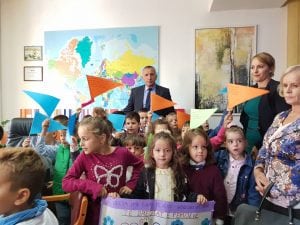 Bujanovac, 3. oktobar 2018.- Đaci OŠ Branko Radičević i deca iz Predškolske ustanove Naša radost bili su povodom Dečije nedelje gosti predsednika opštine Šaipa Kamberija.
