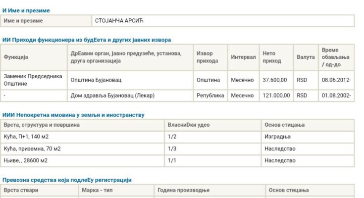 Predsednik SO Bujanovac i njegov zamenik nisu prijavili imovinu Agenciji za borbu protiv korupcije