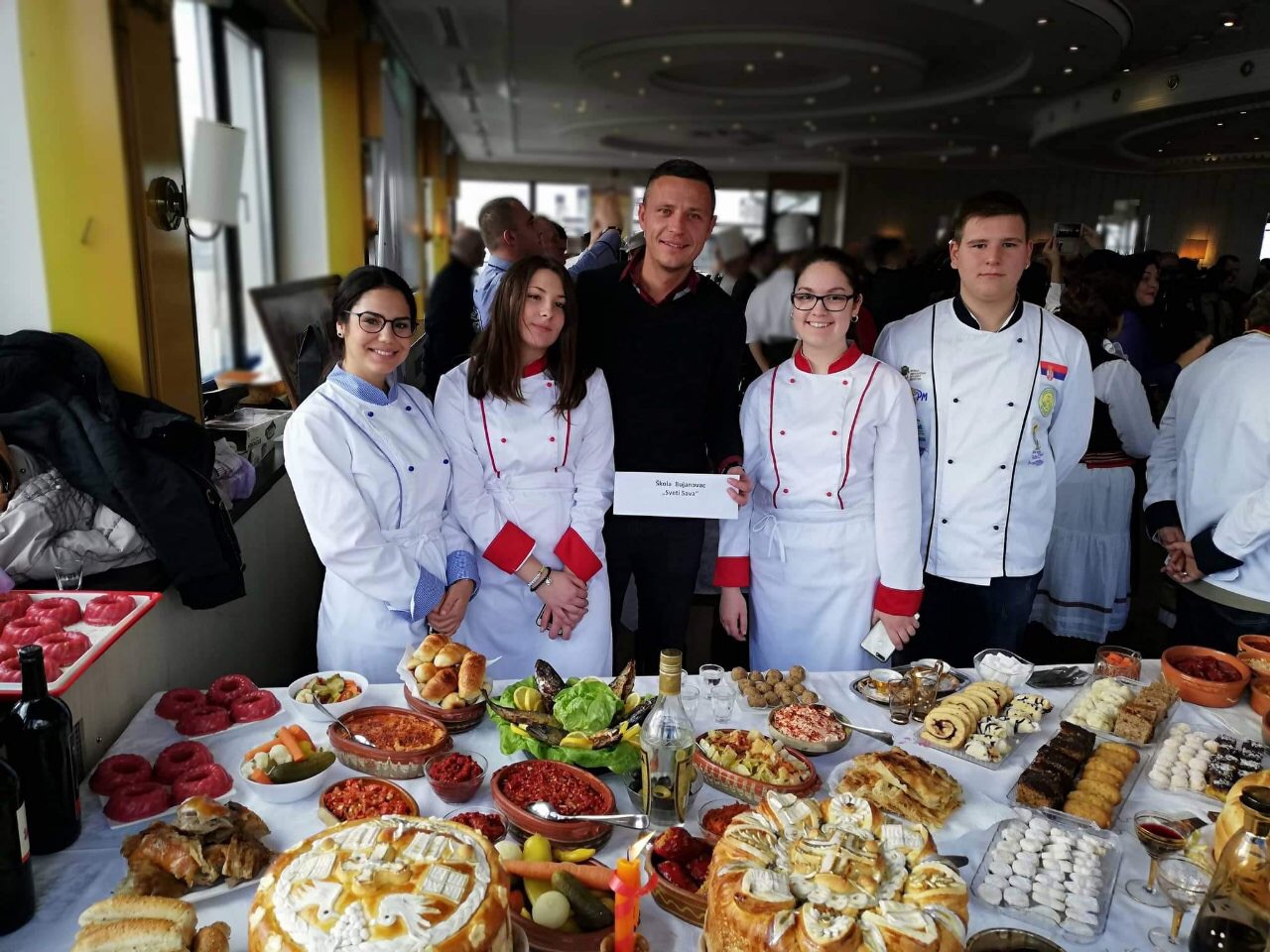 Uz podršku svojih nastavnika kuvarstva, Bojana Mitića i Aleksandra Dimitrijevića, pripremali su sve ono što čini tradicionalnu slavsku trpezu – slavski kolač, žito, ribu, pite i kiflice – za šta su nagrađeni zlatnom medaljom u konkurenciji više izlagača iz zemlje i inostranstva.