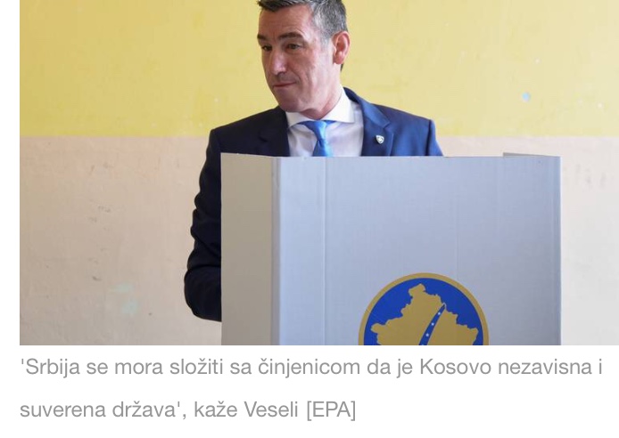 “Neizbežno je da Srbija prizna Kosovo. Mnogi pitaju šta Srbija dobija kada mi ništa ne dajemo. Ali, to je pogrešno jer pitanje je šta Kosovo dobija, šta moj narod dobija. Zato idemo u dijalog sa Srbijom”, rekao je Veselji.
