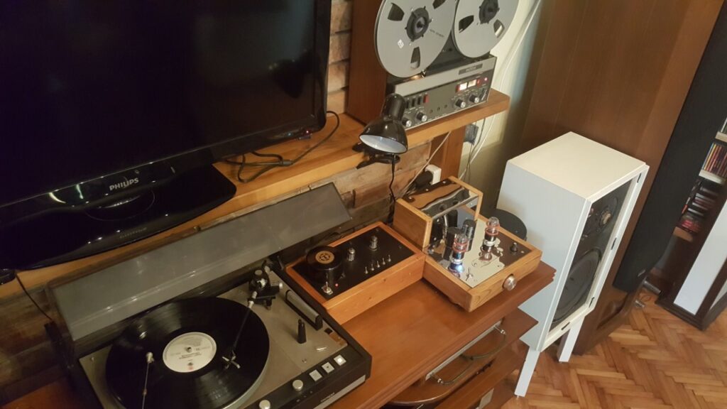 „Zvuk sa magnetofonske trake i gramofonske ploče je nešto posebno, taj analogni zvuk je za mene vrhunski doživljaj muzike, pogotovo u današnjem digitalnom svetu“, priča Siniša doknam pokazuje gotovo zaboravljena lampaška pojačala i pretpojačala  – takođe, njegovih ruku delo.