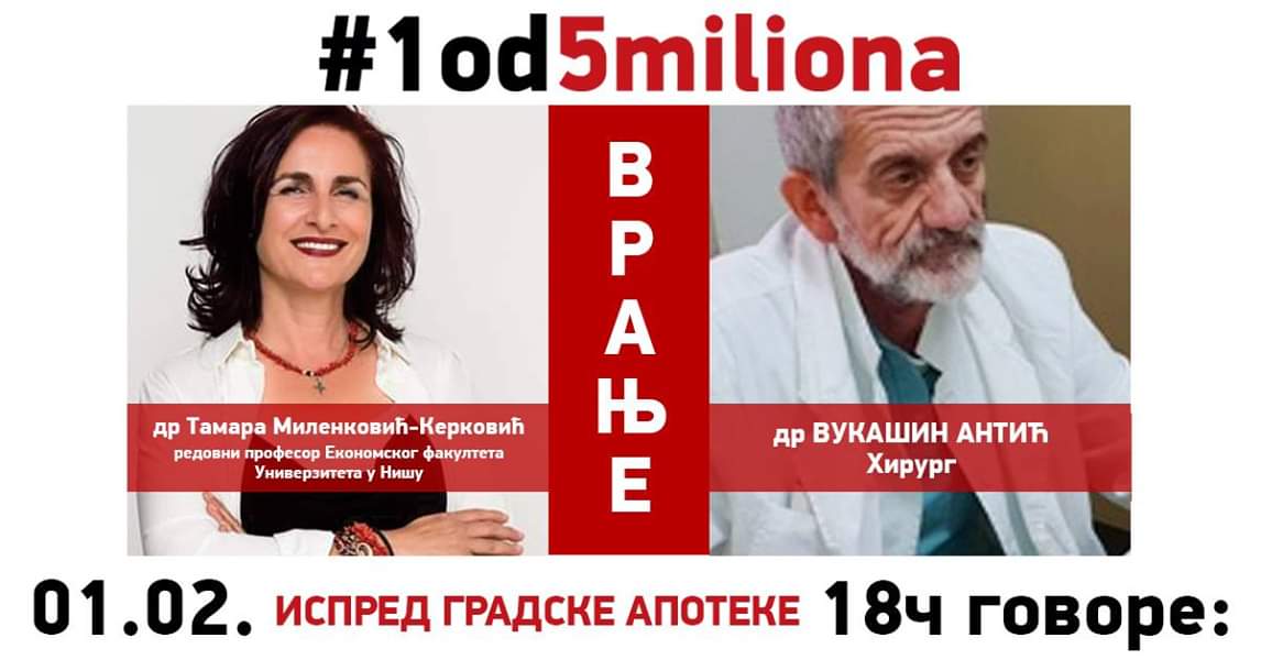 Bujanovac, Vranje, 2. februar 2019. (Foto FB “Vranje bez straha)- Vranjski hirurg Vukašin Antić i dr Tamara Milenković-Kerković sa Ekonomskog fakulteta u Nišu govoriće u petak u 18 časova na protestnom skupu u Vranju, prenosi VranjeNews.