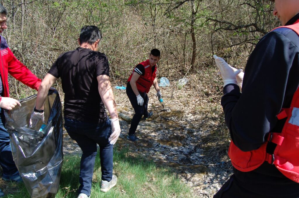 Bujanovac, 22. april 2019.(foto FB)- Dobrovoljci migranti iz Prihvatnog centra i volonteri Crvenog krsta Bujanovac čistili su u nedelju obalu Bujanovačkog jezera.