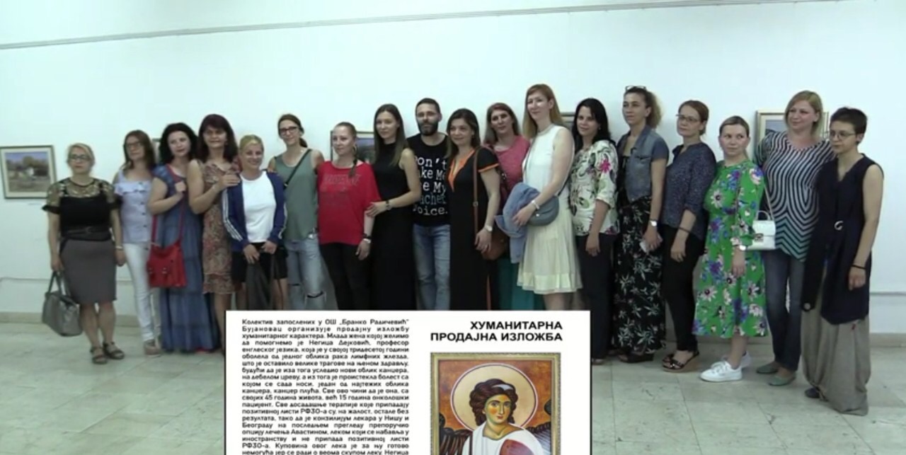 Bujanovac, 15. jun 2019. Akcija prikupljanja pomoći za profesorku engleskog jezika u bujanovačkoj OŠ „Branko Radičević“, Negicu Dejković, koja boluje od karcinoma,započela je uspešno, prodajom 4 slike vredne 120 evra na otvaranju prodajne izložbe slika u petak u Vranju.
