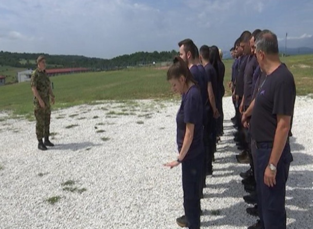 Bujanovac, 26. jun 2019. (Foto RTS)- Civili, u ovom slučaju radnici Komesarijata za izbeglice i migracije, u bazi “Jug” kod Bujanovca obučavaju se za učešće u multinacionalnim mirovnim misijama.