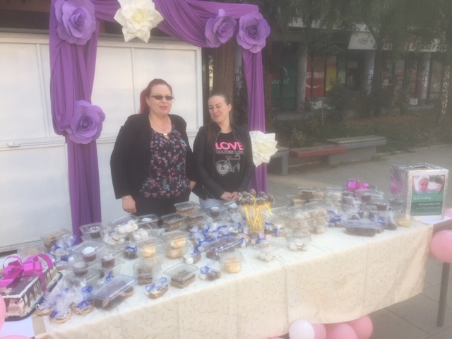 BUJANOVAC, 29. oktobar 2019. – Kolači i torte koje su za pomoć maloj sugrađanki Dunji Milanović napravile Bujanovčanke Jelena, Kristina, Lidija, Sanja i Nataša, planuli su sa štanda koji su ove žene u utorak ujutru postavile na trgu, za dva sata.