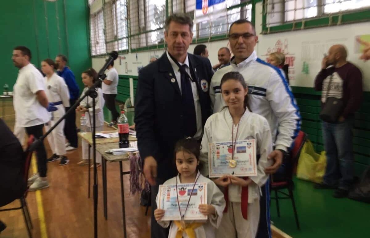 Bujanovac, Beograd, 3. novembar 2019.- Kao specijalni gosti na prijateljskom Internacionalnom karate kupu Beograd 2019, održanom u Sportskom centru Žarkovo, Maša i Anastasija Milosavljević iz BSK osvojile su zlatne medalje i pehare.