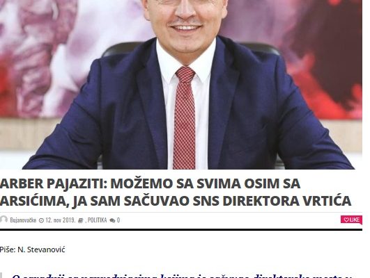 Povodom teksta objavljenog 12.11.2019. godine na portalu www.bujanovacke.co.rs , sa naslovom: ARBER PAJAZITI: MOŽEMO SA SVIMA OSIM SA ARSIĆIMA, JA SAM SAČUVAO SNS DIREKTORA VRTIĆA, ulažem sledeći: