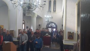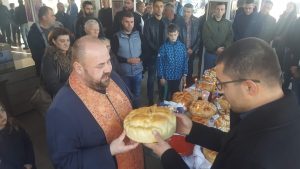 Bujanovac, 21. novembar 2019. Sjatili su se Bujanovčani danas na Aranđelovdan u gradsku crkvu Svetih apostola Petra i Pavla na svetu liturgiju, a potom i rezanje slavskih kolača vernika koji Svetog arhangela Mihaila slave kao krsnu slavu.