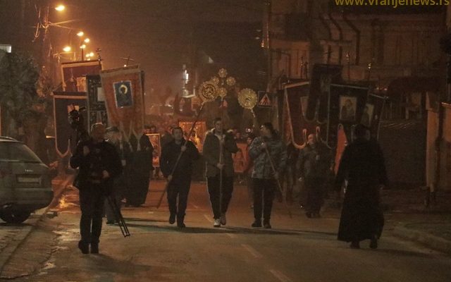 Bujanovac, Vranje, 11. januar 2020. (foto Vranje news) – Na molebanu i litiji u Vranju, koje je organizovala Eparhija vranjska u petak uveče kao znak podrške u borbi za spas srpskih svetinja i čin solidarnosti sa verujućim narodom Srpske pravoslavne crkve (SPC) u Crnoj Gori, po procenama lokalnih medija okupilo se par hiljada ljudi.