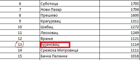 Po ovim brojkama Preševo je na osmom, a Vranje na dvanaestom mestu u Srbiji, Surdulica je na 97. mestu sa 109, a Vladičin Han na 98. sa 104 osoba u samoizolaciji. Pri dnu liste gradova i opština koji su ušli u ovu statistiku su Bosilegrad sa 64 samoizolovanih i Trgovište sa 38, prenosi VranjeNews