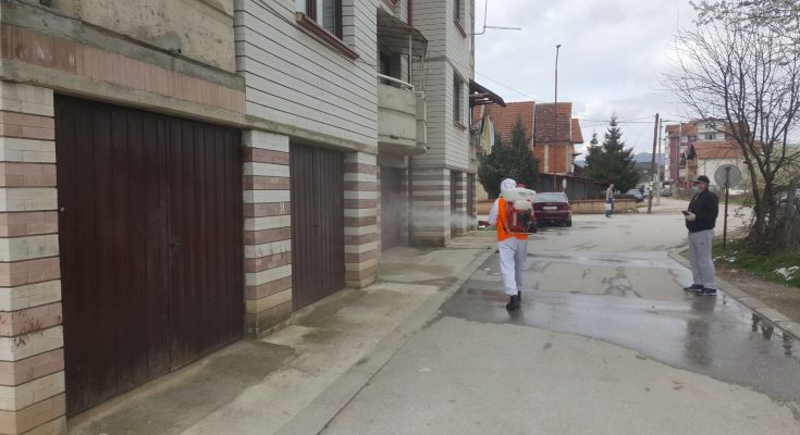 Bujanovac, 3. april 2020. – Bujanovačko naselje Karakačka, u kojoj živi muškarac čiji je test pozitivan na korona virus, temeljno je dezinfikovano u petak.