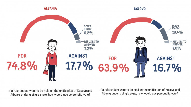 Geografski gledano, ispitanici iz regije Priština i u centralnoj Albaniji čine većinu onih protiv nacionalnog ujedinjenja.
