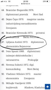 Da ne bude zabune, radi se o istoj osobi, Ljiljani Andrić, odbornici u SO Bujanovac i radnici Turističke organizacije Bujanovac.