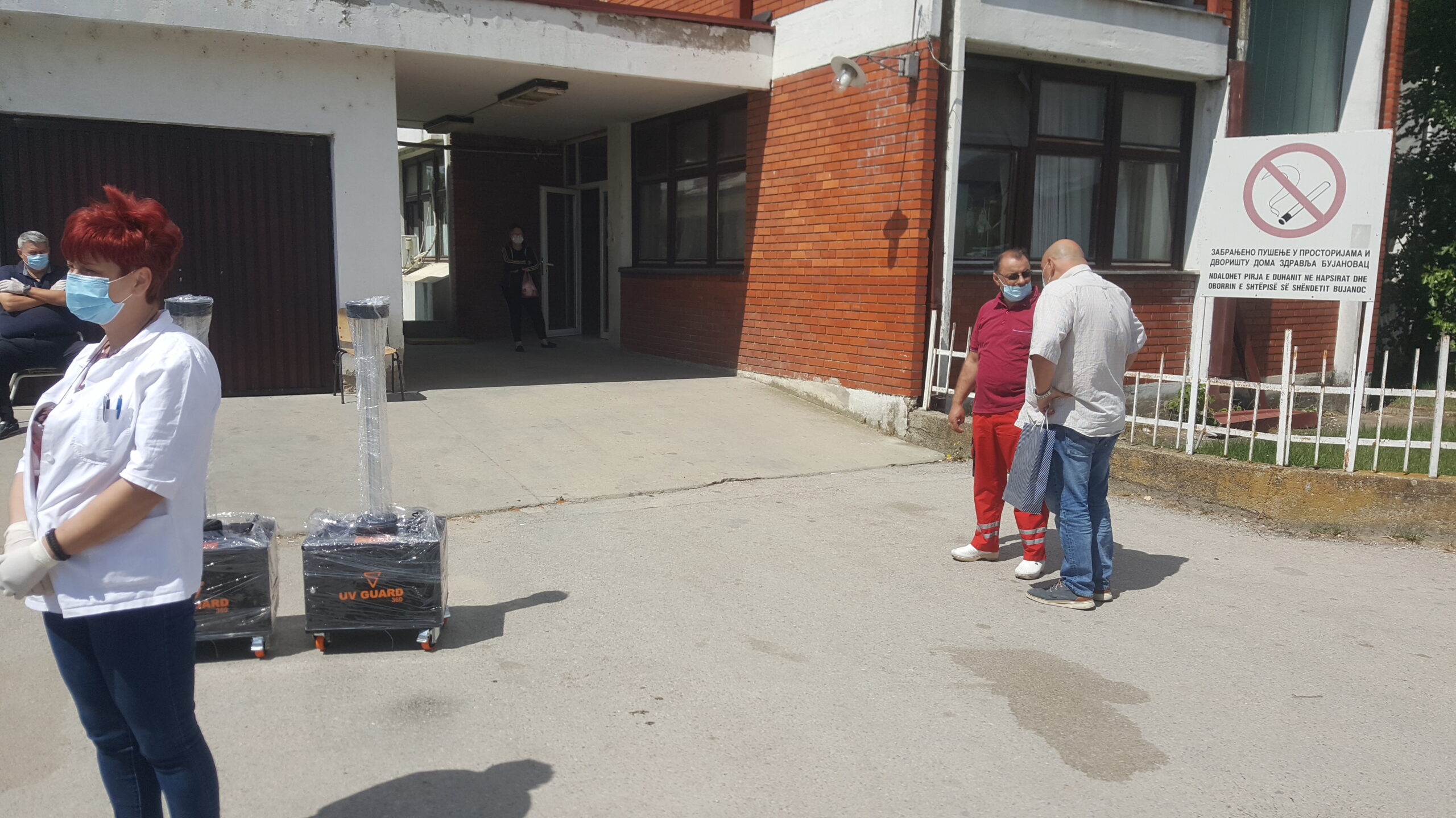 –Jedna lampa sa ultra-violetnim zračenjem će biti u Službi hitne pomoći, a druga u covid-ambulanti. To su moderni aparati koji pokrivaju 50 kvadrata i vrše sterilizaciju na 15 minuta. Vrlo značajna oprema za nas, za zaštitu naših radnika i zahvaljujem se u ime kolektiva, i u svoje lično ime, Bogoljubu Tomiću, direktoru DIB-a, i Bratislavu Lazareviću, sekretaru Crvenog krsta – kaže za Bujanovačke dr Lela Jovanović.
