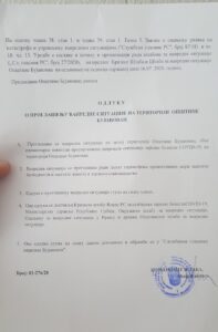 Bujanovac, 17. juli 2020.- Predsednik opštine Šaip Kamberi potpisao je u petak odluku o proglašenju vanredne situacije na teritoriji Bujanovca koja je stupila na snagu istog dana.