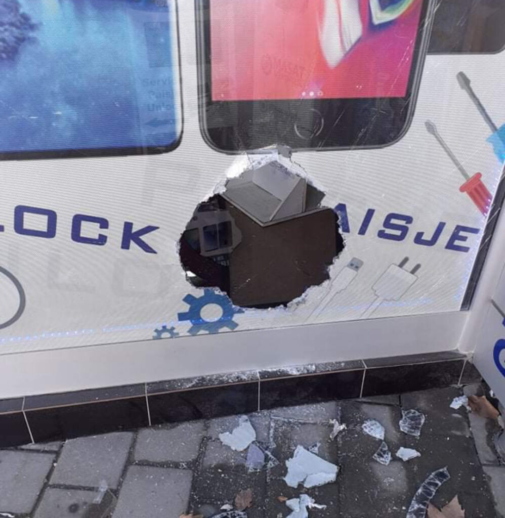 Na poslovnici mobilnog operatera je takođe razbijen izlog.